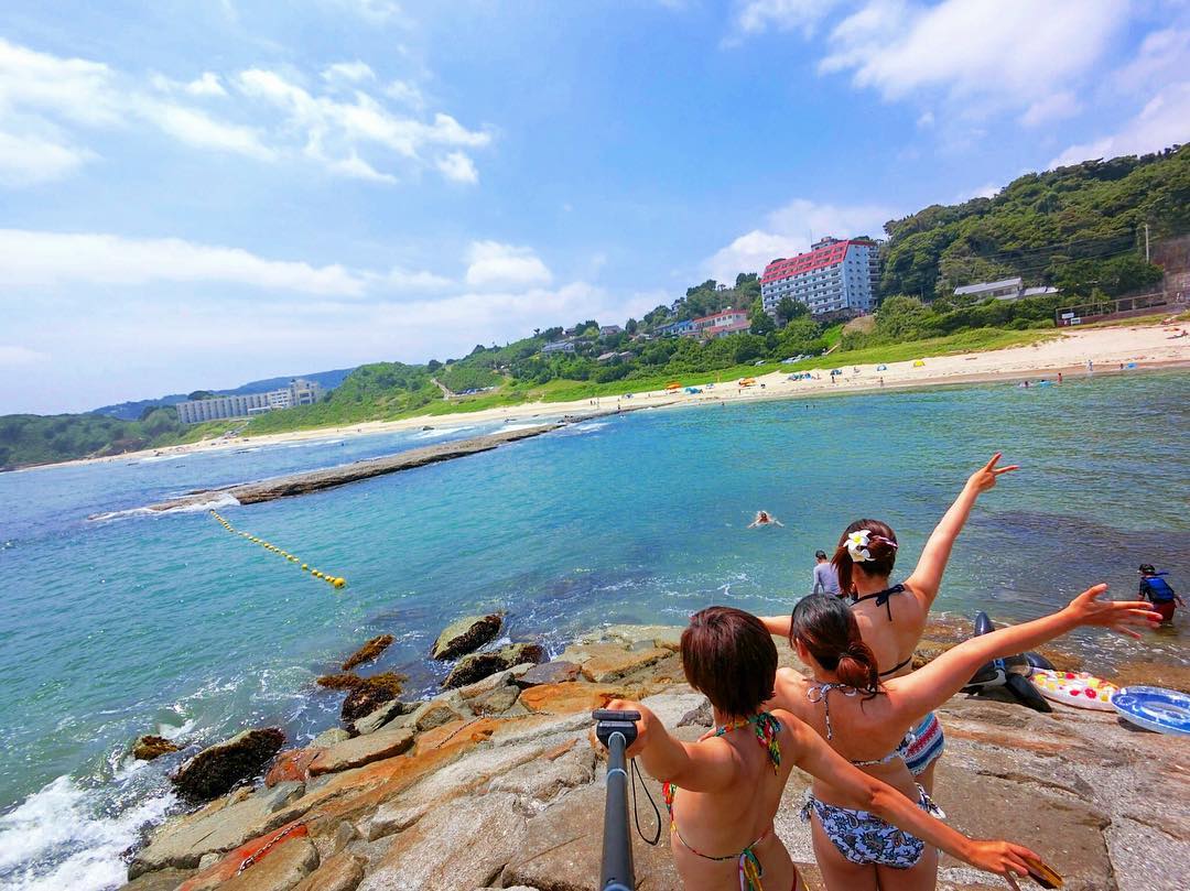 ご本人コメント「白浜ブルー 沖まで泳いでたどり着いた岩場は、360度のパノラマブルー!自然豊かでご飯も美味しい、最高なバカンス♡♡」