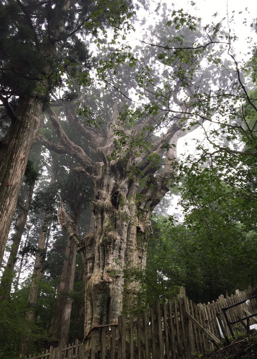 ご本人コメント「紀元前の神様に呼ばれて辿り着いた神域。玉置神社の神代杉は屋久杉に負けていない( ´ ▽ ` )ノ 雲海を纏う姿に神の存在を感じる 7月16日訪問。 」