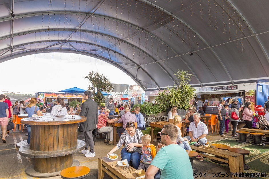 毎週金・土曜日の夕方に開催されているフードマーケット!貨物用コンテナを使った屋台から漂ってくるのは食欲をそそるおいしい香り。