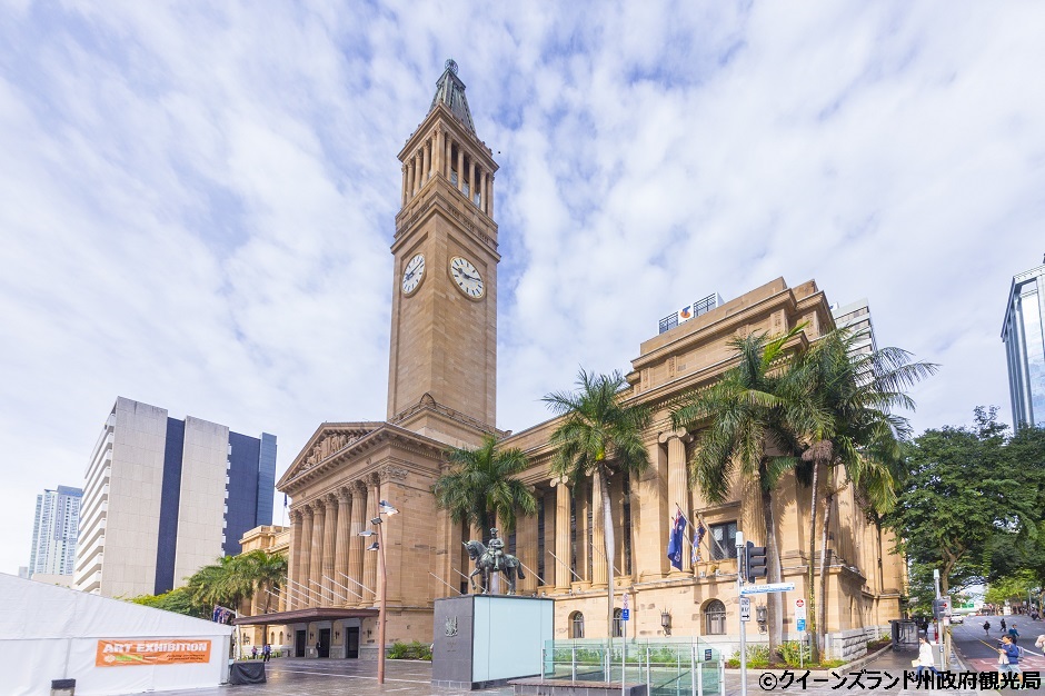 シティの真ん中にそびえる時計台が特徴のシティホールは、市民に親しまれているブリスベンのシンボル。