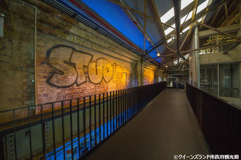 電力所時代のコンクリートがむき出しの壁には躍動感あふれるグラフィティアートが描かれていたり、産業ビルならではの無機質さと気鋭のアートが出会うアンダーグラウンドな香りがたまらない!