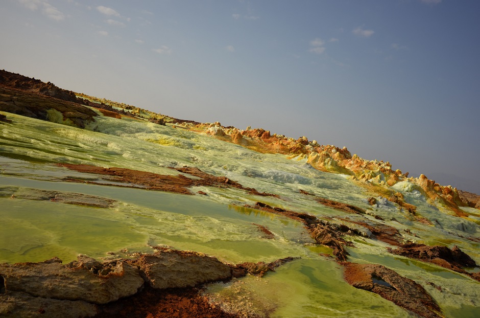 アフリカ大地溝帯に位置し、夏は気温50度以上、冬でも40度を越える世界で最も過酷な場所のひとつとされるダナキル砂漠。