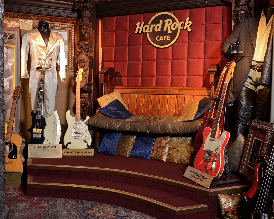 日本でもおなじみのアメリカンダイニング『ハード ロック カフェ』。ロンドンは1971年に1号店がオープンしました。またレストラン向かいのHard Rock Shopの地下には、The Vaultというミュージアムがあり、ここにはジョン・レノン直筆の歌詞や、彼が実際に着用していたジャケット、トレードマークのメガネなど、貴重なアイテムが展示されています。