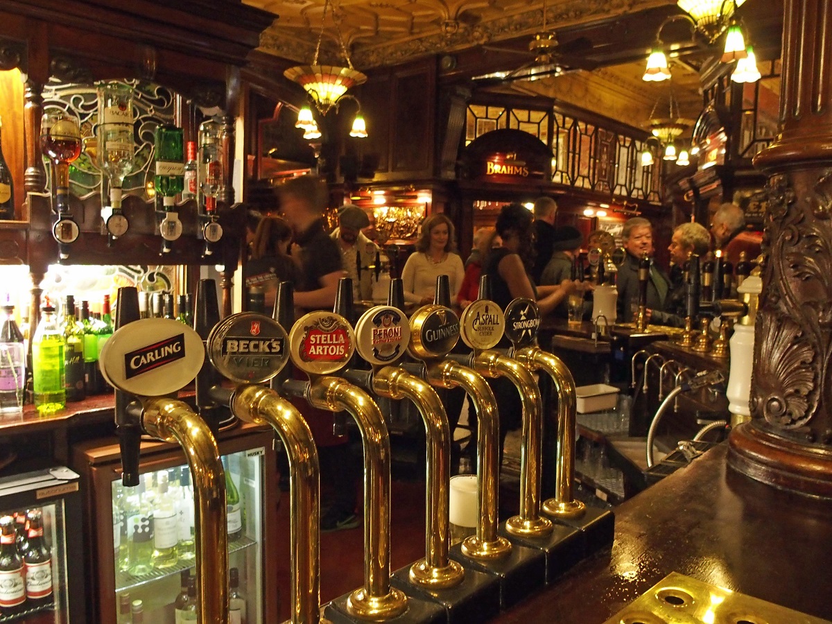 ジョン・レノンのお気に入りのひとつだった、1898年〜1900年くらいに作られたアール・ヌーヴォースタイルの装飾が見事なパブ。重要建築物として登録され、紳士用のトイレがとにかく豪華なことで有名です。一見の価値あり!
