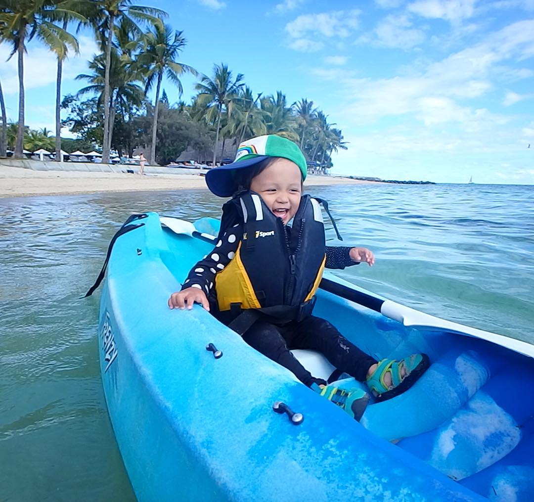 写真提供:@cho_so_さん投稿コメント「《23M27d》*楽しそうで何より*でも2回目のカヌーの最中にすんごい前かがみの体勢で寝落ちしてました(笑)どこでもどんな状況でも寝落ちする人」