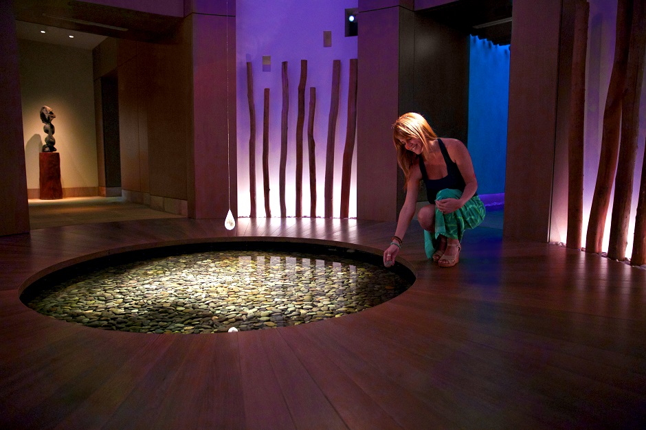 「ラニヴァイ=真水の天国」という名前が付けられているだけあり、ライトアップされた水流の壁など随所に水にまつわる演出が施されているスパ施設。