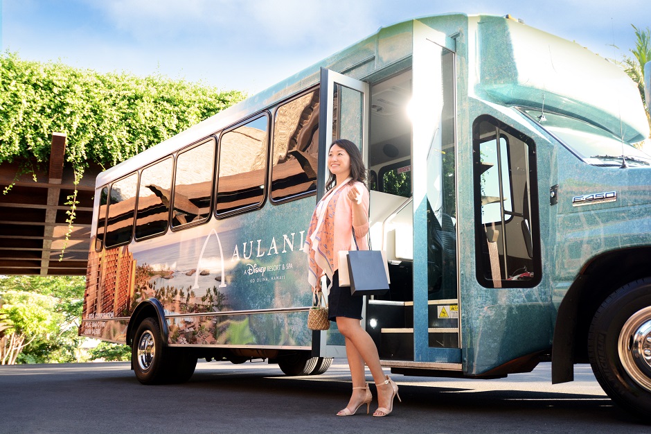 アウラニに3泊以上ご滞在いただくと、アウラニからワイケレ、アラモアナ、ワイキキといった世界有数のショッピングセンターまで往復するシャトルに、ご滞在中乗り放題♪<日本語のコンシェルジュ>