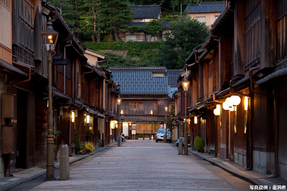 江戸時代末期に誕生した城下町の風情を、現在もそのまま残した「ひがし茶屋街」。