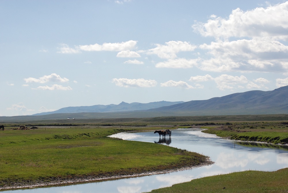 現在でも、大草原の広がる高原で、ヒツジ・ヤギ・馬・牛・ラクダといった家畜の放牧や遊牧が行われています。そんな遊牧民の子供たちは乗馬が得意!