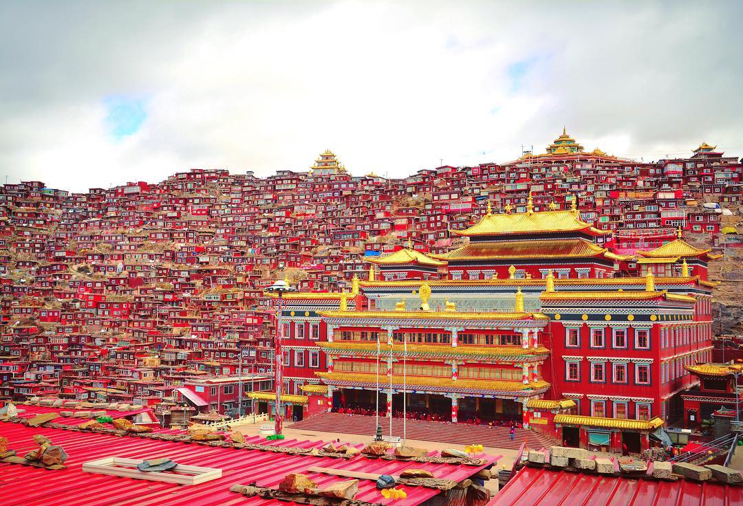 The largest Tibetan Buddhist institute in the world. 後ろのは全部チベット僧の家 2015.05