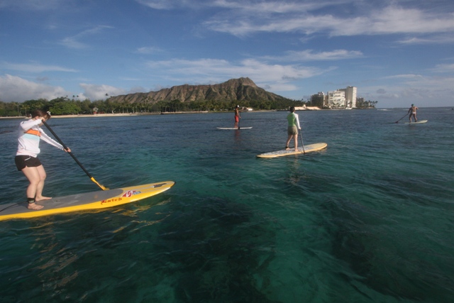 今、人気沸騰中のSUP(スタンドアップパドル)をハワイでデビュー!!
