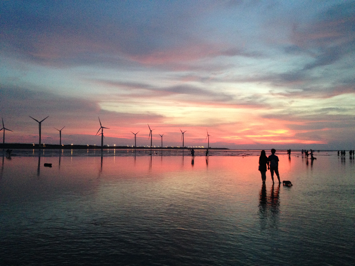 絶景スポットとして人気を集めるボリビアのウユニ塩湖に似た景色が、台湾で見ることが出来るのです!湿地に水が張り、風が弱まるとその水に空が反射し、まるで鏡のようになります。そばには風車があり、風車越しに見る夕焼けはまさに絶景!但し、水位が景色を大きく左右する為、訪れる前に必ずご確認を!満潮時ではこのような景色は見られず、最干潮前後の1時間以内がオススメです。
