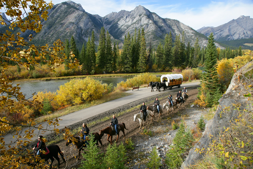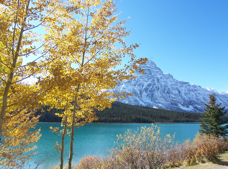 同じカナダのメープル街道は真っ赤に染まる紅葉が楽しめますが、ここバンフのあるカナダ西部にはメープルの木はあまりなく、ポプラやシラカバなど、黄色に美しく染まる黄葉が楽しめます。