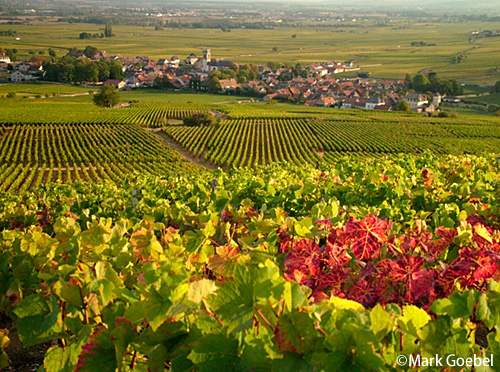 ワインの産地として有名なフランス・ブルゴーニュ地方。9月下旬にはブドウの収穫時期となります。収穫が終わると、ブドウ畑には一気に秋が訪れます。そんなブドウ畑の紅葉は、場所によって黄色だったり、赤だったり、茶色だったり、緑のままだったりと、広大な畑が美しい色合いに染まります。太陽の光を浴びると真っ赤にも、黄金色にも見え、思わずため息が出るほどの美しい光景が広がります。