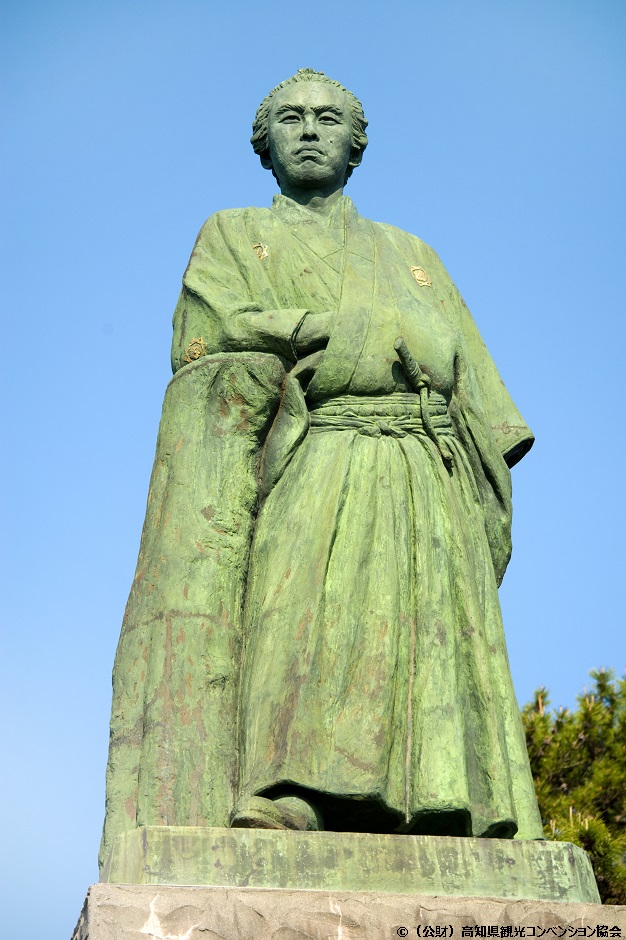 竜王岬(りゅうおうざき)と竜頭岬(りゅうづざき)の間に弓状に広がる海岸で、高知県を代表する景勝地。坂本龍馬の銅像がある浜辺としても有名ですね。