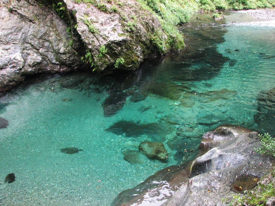 青色でも空色でもなく…表現できない独特の色は、「仁淀ブルー」と呼ばれ、ここでしか見られない貴重な色です。