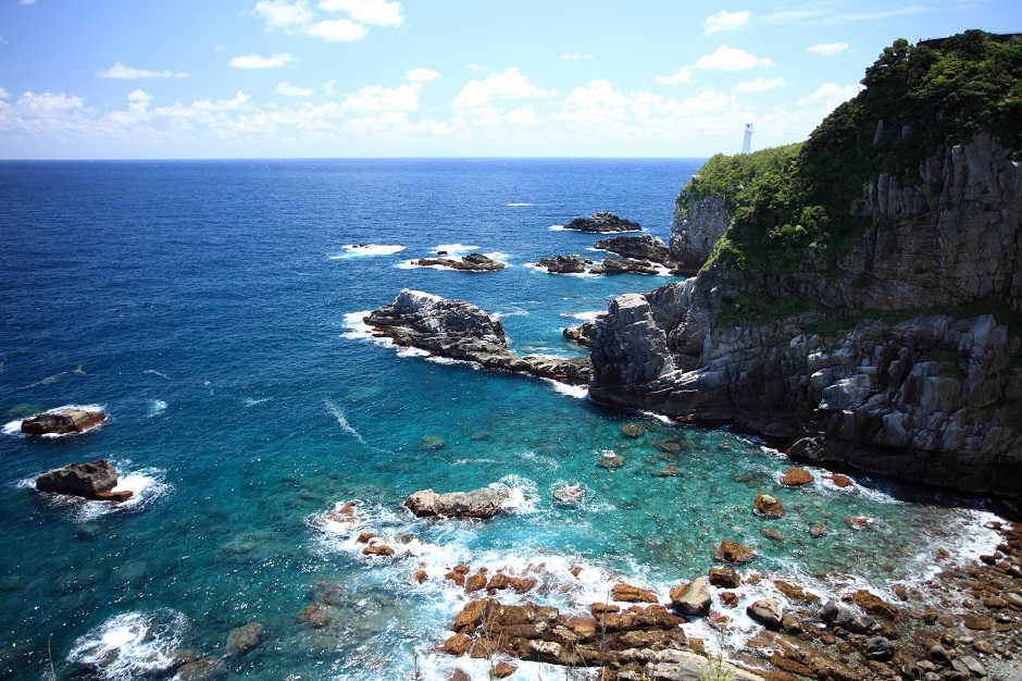 足摺半島の先端にある展望台からは、270度以上の太平洋を見渡す視界が広がり、地球の丸さが実感できます。