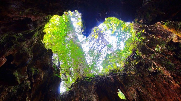 屋久杉の切り株であるウィルソン株の内部には入ることができ、空を見上げると「ハート」型に見えるポイントがあります!