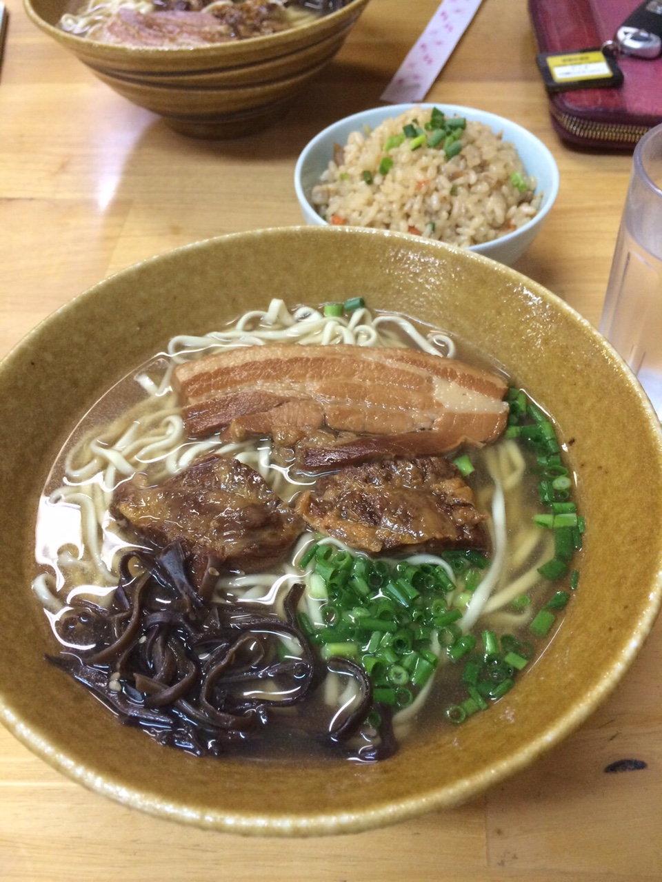■お勧めコメントスープは薄味だけどしっかりとコクのある味!トッピングの三枚肉と軟骨ソーキは、どちらも柔らかく、味付けも濃すぎず、薄すぎず、麺、スープとバランス最高♪また沖縄そばには珍しいキクラゲも入ってます!