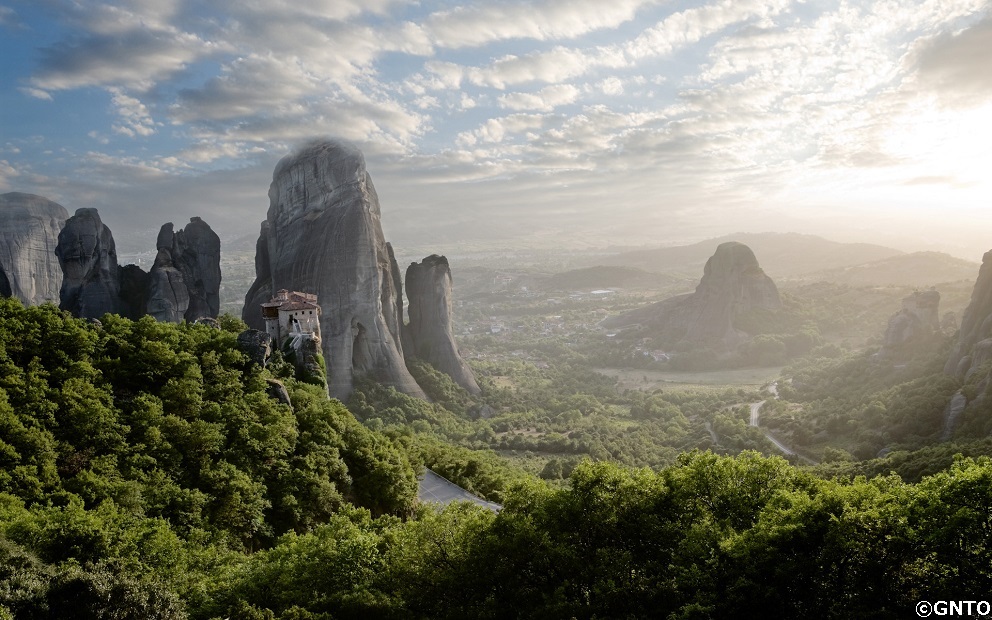 そそり立つ岩の塔に立つ修道院は、「メテオラ」(=現地の言葉で“中空”を表す)の名が示す通り、まるで空中に吊り下げられ、浮かんでいるかのように見えます。その地形及びギリシャ正教の修道院文化の価値からユネスコ世界遺産に指定されています。