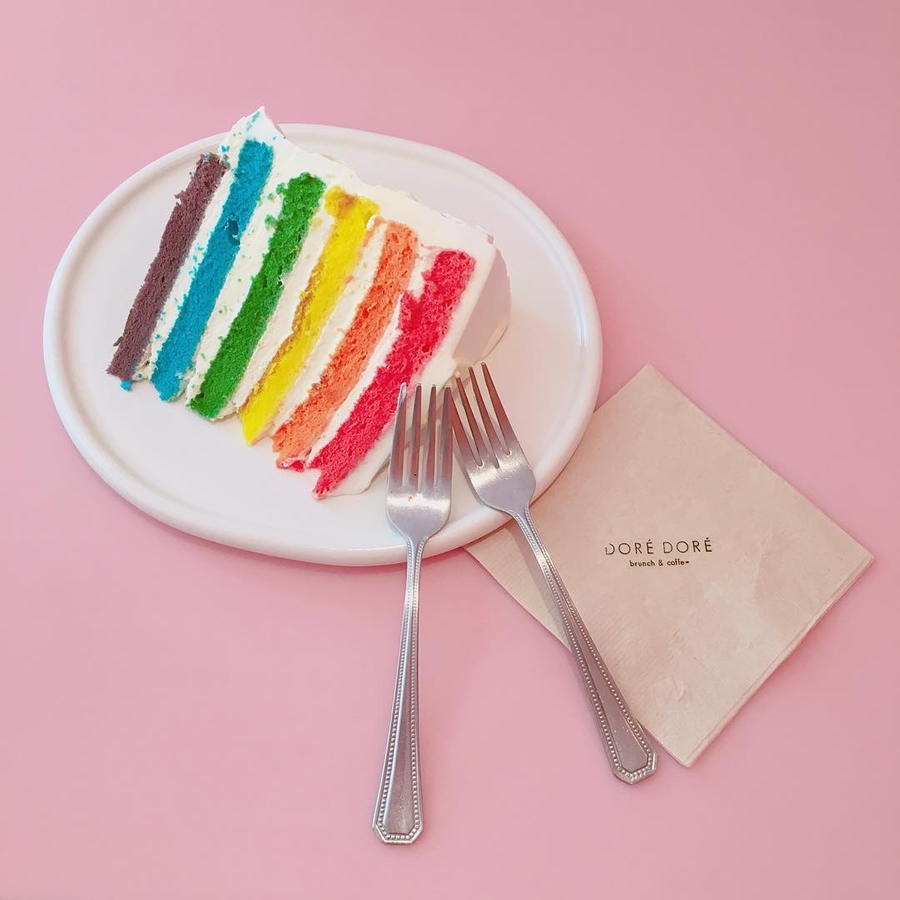 新沙にあるこちらのカフェ「DORE DORE」はフランス語で“黄金の光”という意味で黄金の光の温かさをイメージしたカフェ!レインボーケーキをはじめ、可愛いケーキ・セクシーケーキなど面白い名前のカラフルなケーキが人気です。
