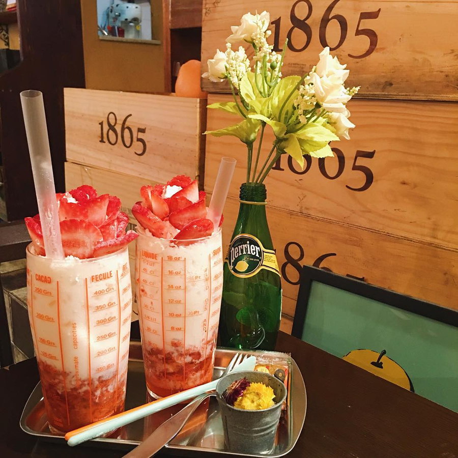 学生の街「新村」にあり、薔薇のようにイチゴが盛られているイチゴラテやスイーツ・軽食を楽しめるお店として人気を集めています。