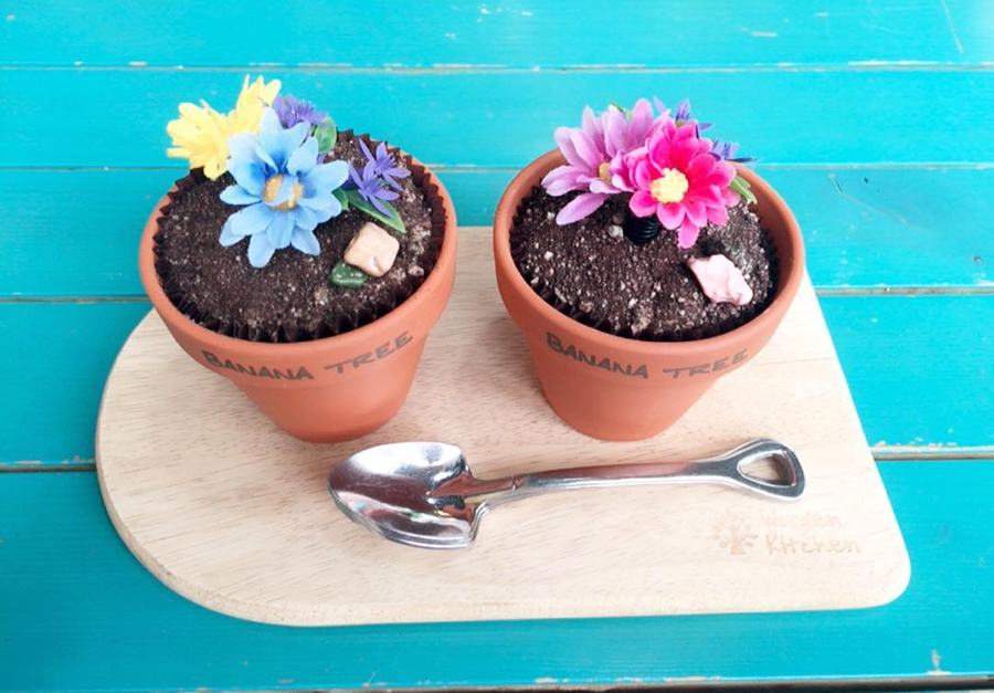 「お庭のような雰囲気がとてもかわいらしいです!植木鉢をお皿として使い、シャベルをスプーンとして使う斬新さに引かれました。」