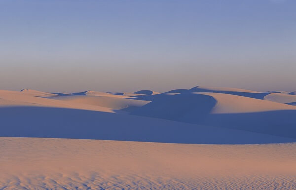 自然の風により作り出される広大な白砂漠の美しい波紋状の紋様や、太陽光の当たる角度によって変化する砂丘の表情!