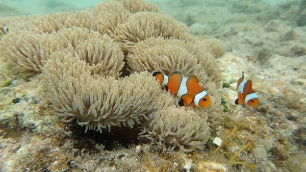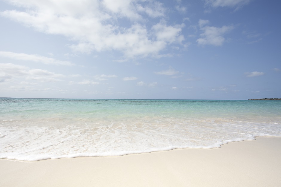 真っ白な砂で出来た小高い丘を下りると、そこに広がる美しいマリンブルーの海。サンゴから作られたアーチ型の巨岩の陰で、ゆっくり流れる時間を