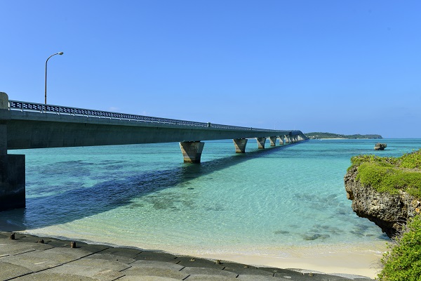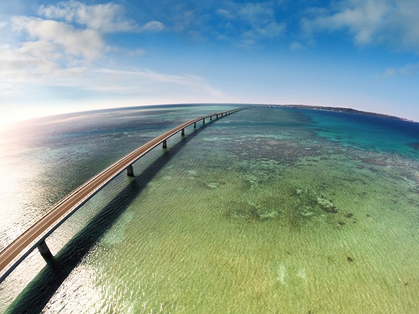 総工費は99億円と言われており、橋から望む海の美しさも圧倒されますが、橋そのものの構造が美しいことでも有名です。エメラルドグリーンの中を走る爽快感はたまりません。わき見運転には注意しながら、宮古島の風を感じましょう♪