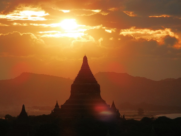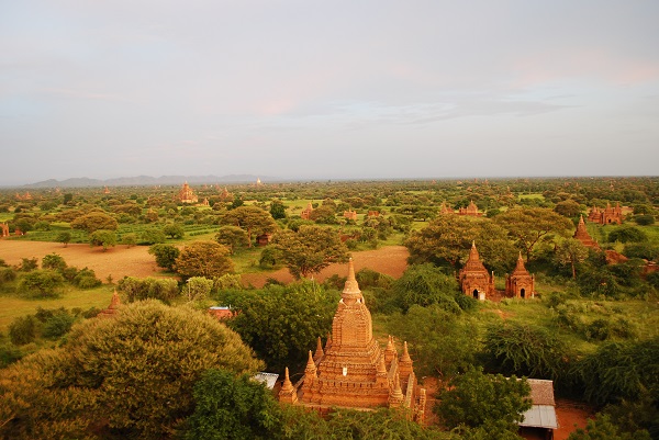 小高いパゴダに登れば朝焼けや夕焼けに染まるバガン遺跡群の絶景を楽しむことができます。