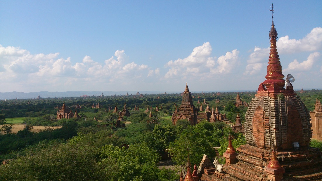 ミャンマー仏教の聖地ともいわれ、広大な緑の平原に無数の仏塔だけが立ち並ぶ光景は圧巻です。