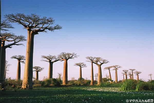 マダガスカル島の植物の代表といえば、小説「星の王子様」にも登場するバオバブの木。別名「さかさまの木」とも呼ばれる不思議な形をした巨木です。