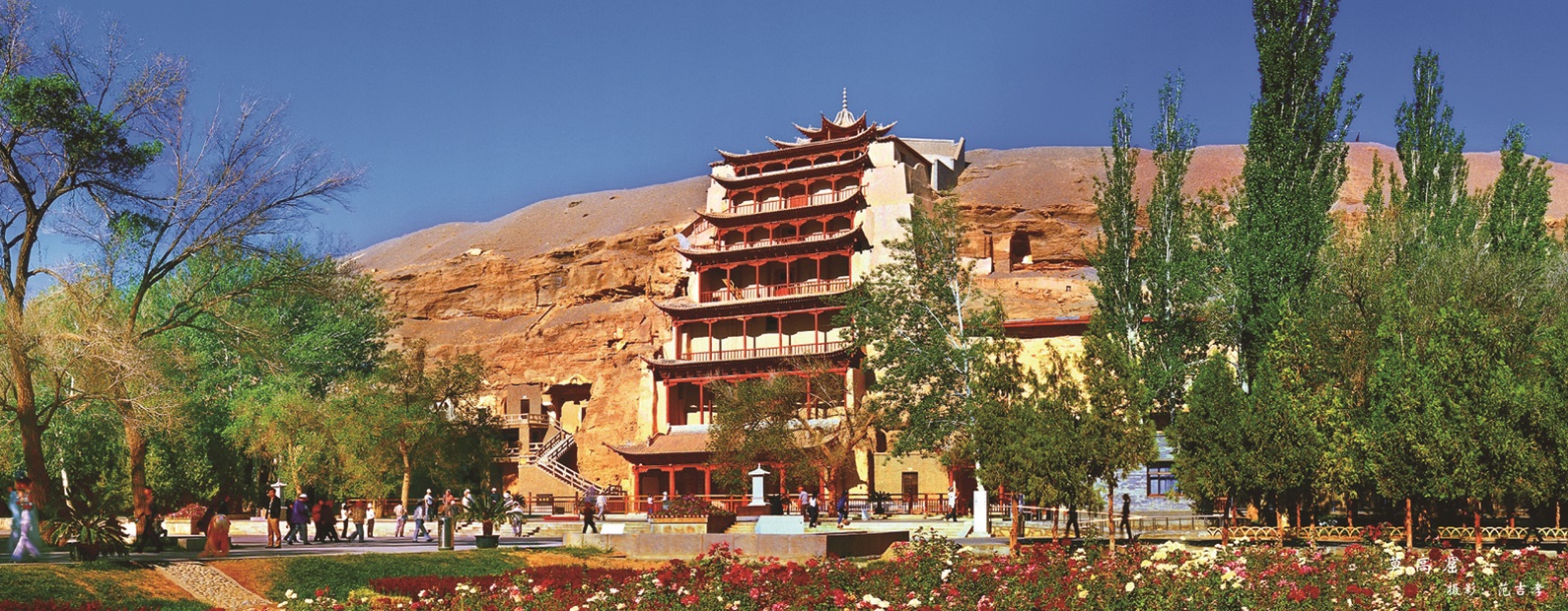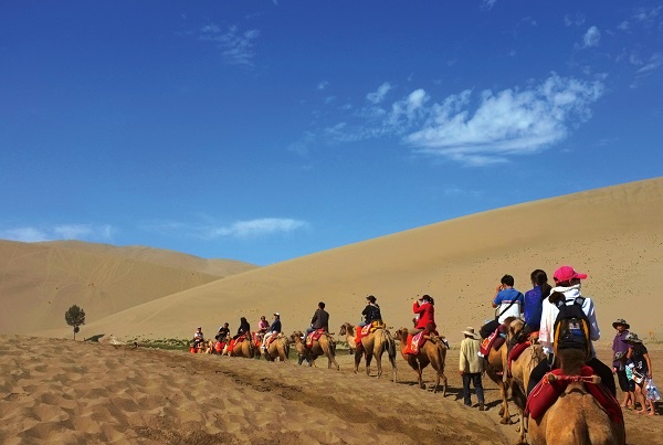 さらに、敦煌の周辺に位置し、美しい砂丘が連なる砂漠「鳴沙山(めいさざん)」では、シルクロードを旅する商隊の気分が味わえる「ラクダ乗り体験」が楽しめます。