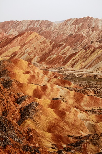 マルコ・ポーロの『東方見聞録(※注1)』でも知られるシルクロード河西回廊(かせいかいろう※注2)の町「張掖(ちょうえき)」より約50kmほど離れた場所にある「張掖丹霞地貌(ちょうえきたんかちぼう)」。