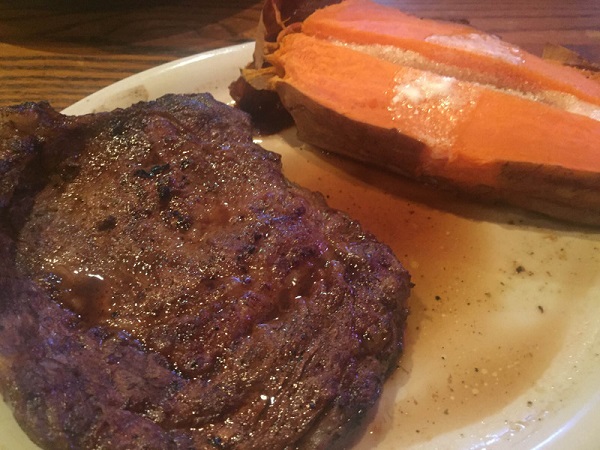 ステーキを注文すると、ご飯やポテトなど5種類のサイドメニューから選ぶことができます。こちらは、スイートポテトのセット!