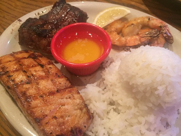 ステーキとコンボを注文したので、野菜・肉・魚・エビとバランス良いオーダーができました。