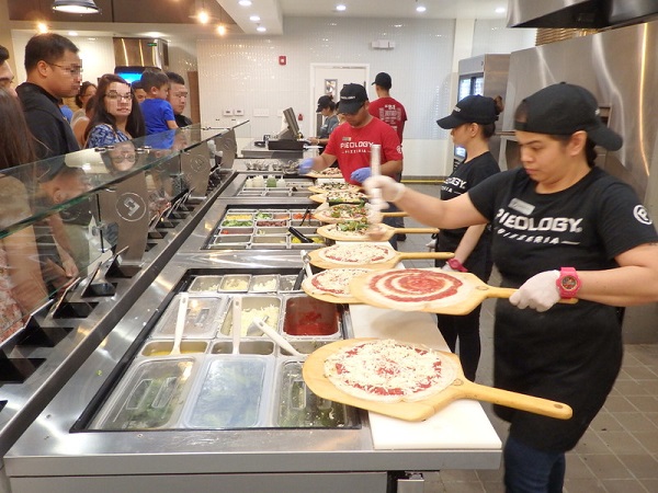 今年、自分でカスタムできるピザ屋「PIEOLOGY(パイオロジー)」がグアムにオープン!今、話題の人気店です。店内に入ってすぐのところに、ピザのオーダー方法が案内されており、英語が分からなくても、カウンターへ行っちゃえば大丈夫♪