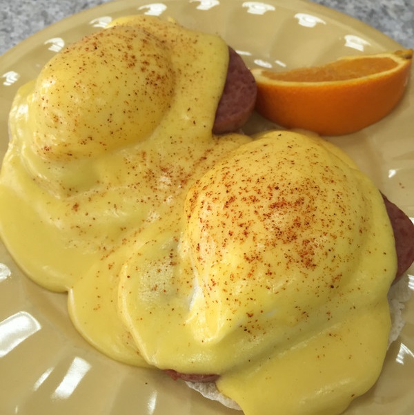 深夜0時から14時まで営業の朝食専門店!深夜便でグアムに到着しても食事に困りません!天井が高く、開放的な店内で、外にはテラス席もあり、店名の通り、パンケーキやオムレツなど「卵」を使ったお料理がたくさんあります。