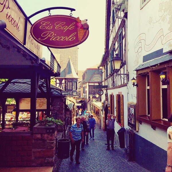世界遺産であるライン渓谷中流上部にあるワイン醸造の町です。毎年夏にワイン祭りが開かれ、そのハイライトとしてワイン女王とその王女たちの戴冠式が開かれる。ワイン女王とその王女たちはリューデスハイムの町とワインを象徴しています。