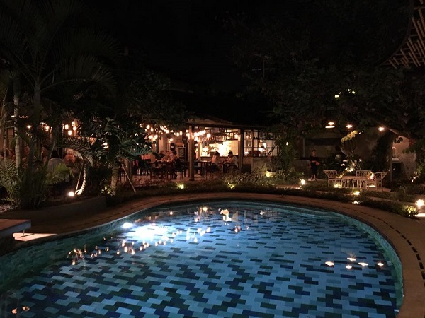 リニューアルオープンした店内は、中央にプールがあり、その周りに座席が並びます。夜になると、照明がライトアップされ、とてもロマンティックな雰囲気に♪記念日のディナーなどにも最適なオシャレなレストランです。