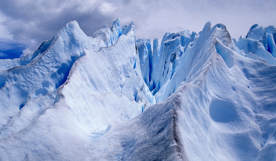 全長約35km、高さ約60m、面積約250平方キロメートルという巨大なペリト・モレノ氷河は、淡水独特の青みを帯びていて、