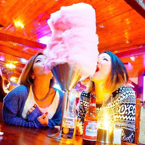 外観も内装もウエスタンな雰囲気で、特に、夜は人がいっぱいで賑わっています。Cotton Candyは、特に女性のグループなどに人気のメニューです。