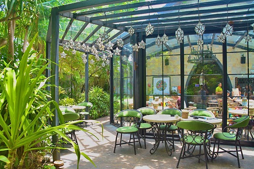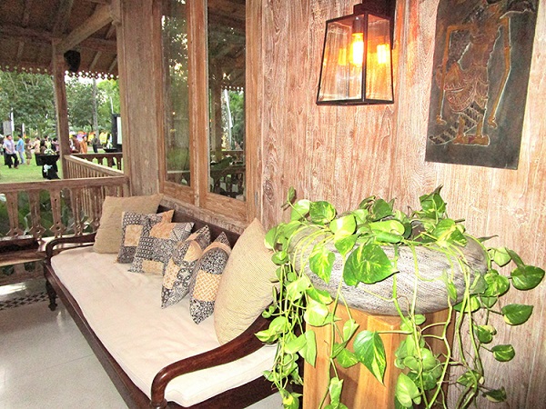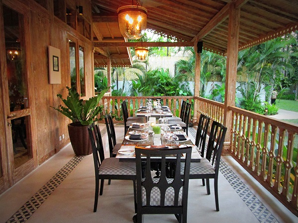 屋根やベランダ、家具、タイルなど、隅々までこだわりぬき、インドネシアの伝統的な建築スタイルを再現しています。緑のガーデンを眺めながら、食事を楽しめるベランダ席も、心地よく…