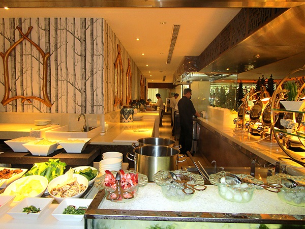 料理はビュッフェスタイル!オープンキッチンでは、シェフがその場で好みに合わせて調