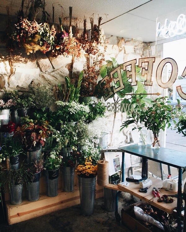 リンカーンブルーバード沿いにあるカフェ&フラワーショップ。とにかくお店の中が可愛い!花であふれているからいい匂いだし、