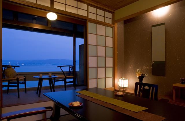 ・すべての客室が宍道湖(しんじこ)を展望するくつろぎのお部屋。宍道湖は日本の夕日百選にも登録されている絶景です。