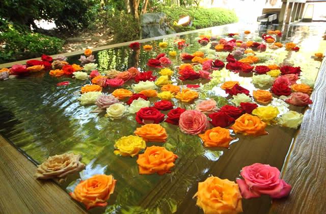・敷地内に源泉を持った、自家源泉かけ流しの天然温泉があります。さらに女性に嬉しいポイント!毎日15時~22時は「こもれびの湯」に約200輪のバラが浮かびます。
