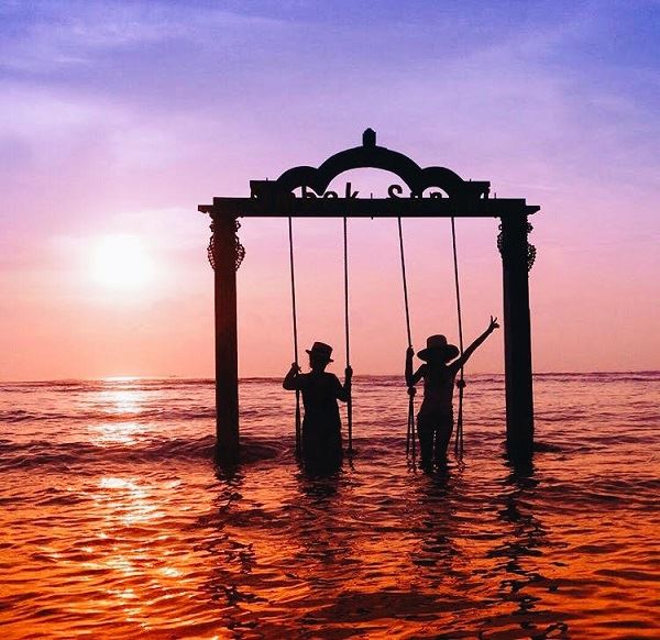 ギリトラワンガン島のオンバックサンセットでのブランコからの夕日。インスタで発見した時に絶対に行きたいと思い達成できました。