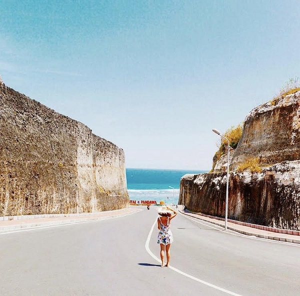 バリは絶景が多いので人物よりも景色メインで風景を引き立たせるshotを撮る。バリに行く前に、行きたい場所のイメージをして風景にあう洋服のスタイリング、素材、カラーも決めて行く。